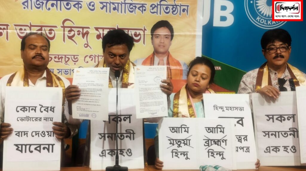 দিগদর্শন ওয়েব ডেস্ক : সম্প্রতি কলকাতায় প্রেস ক্লাবের অখিল ভারতীয় হিন্দু মহাসভার পক্ষে একটি সাংবাদিক সন্মেলনে সংগঠনের সভাপতি ড: চন্দ্রচূড় গোস্বামীর জানালেন, দিল্লির সন্ত্রাসবাদীদের ফাঁসির দাবিতে এবং নিহতদের স্মৃতিতে এক মিনিট নীরবতা পালন করে প্রতিবাদে জানাচ্ছেন। ড: গোস্বামী আরও জানান, এস আই আর করতে গিয়ে নির্বাচন কমিশন যেন দেশীত কেন্দ্রীয় শাসক দলের অনুগত না হয় সেদিকের সংগঠন কঠোর দৃষ্টির রাখছে। অখিল ভারত হিন্দু মহাসভা চায় এসআই আরে যেন একজনও সঠিক ভোটার তালিকা থেকে বাদ না যান। দেশে শত্রুর রাষ্ট্রের প্ররোচনায় একদল ভারতবিরোধী এদেশের নাগরিক জঙ্গি কার্যকলাপ চালাচ্ছে।দ্রুত এদের চিহ্নিত করে মৃত্যুদণ্ড দেওয়া হোক।বিশেষ করে চিন্তার কারণ এক বিদেশি সম্প্রদায়ের মানুষ যারা পেশাগতভাবে চিকিৎসক হয়েও মানববিরোধী কাজ করছে। দেশের মানুষকে বিষ মিশ্রিত ওষুধ ও পথ্য দিয়ে মেরে ফেলার ঘৃঙ্গর চক্রান্ত করছে।